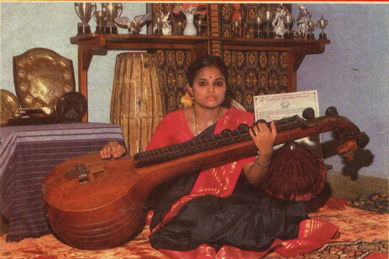 A prominent name in the field of Carnatic classical music . She plays the Veena and is a A Grade artiste and has been closely associated with the All India Radio(AIR) and Doordarshan (DD) for a long time.